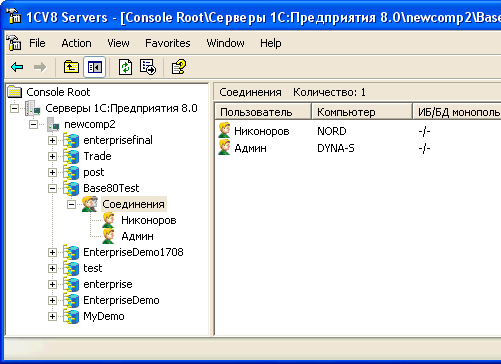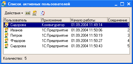 Список активных пользователей позволяет получать информацию о том, кто из пользователей работает с информационной базой в данный момент: