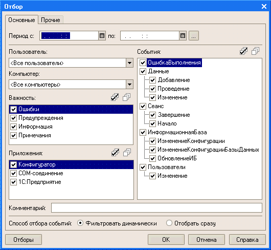 Журнал регистрации содержит информацию о том, какие события происходили в информационной базе в определенный момент времени или какие действия выполнял тот или иной пользователь: