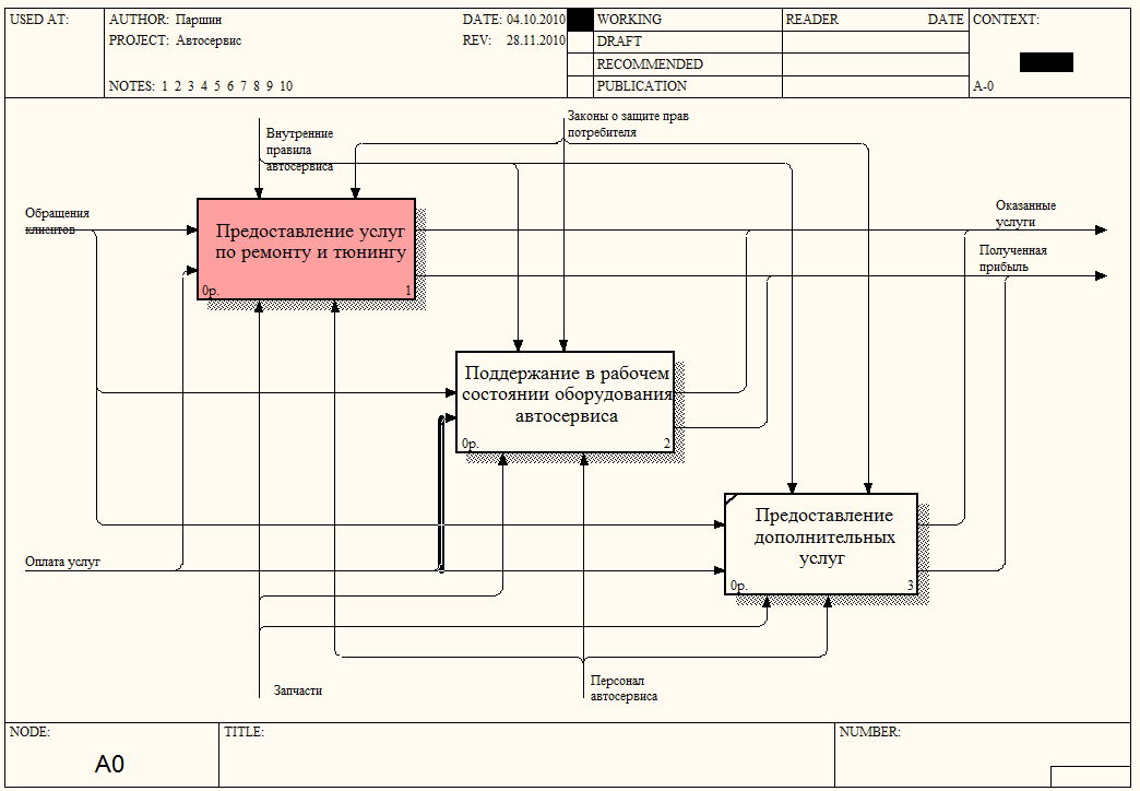 Как видно из диаграммы, весь процесс функционирования автосервиса разбивается на три: