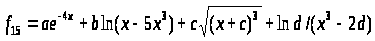 z:=a*exp(-4*x)+b*ln(x-5*x*x*x)+c*SQRT(exp(3*ln(x+c)))+ln(d)/(x*x*x-2*d);