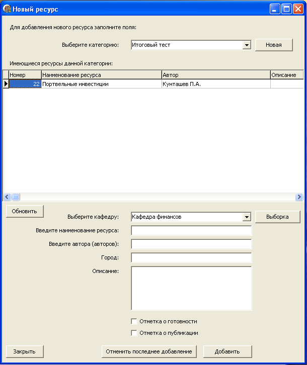 Другим документом, функционирующим в рамках данного процесса, является отчет о состоянии электронных образовательных ресурсов. Данный отчет формируется в виде выборки из общего хранилища ресурсов по каким-либо критериям. Например, может возникнуть необходимость создать отчет, в котором указать все ресурсы, разработанные за конкретный период времени, либо ресурсы, разработанные авторами белгородского филиала МЭСИ. Данные отчеты являются статистическими показателями, отражающими достаточность и актуальность функционирующего в образовательном процессе контента. Пример такого отчета приведен в приложении 8.