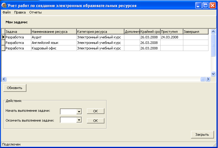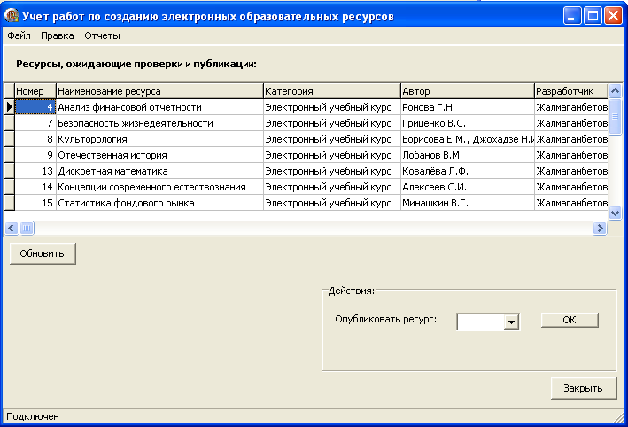 Автоматизация учета работ по созданию электронных образовательных ресурсов