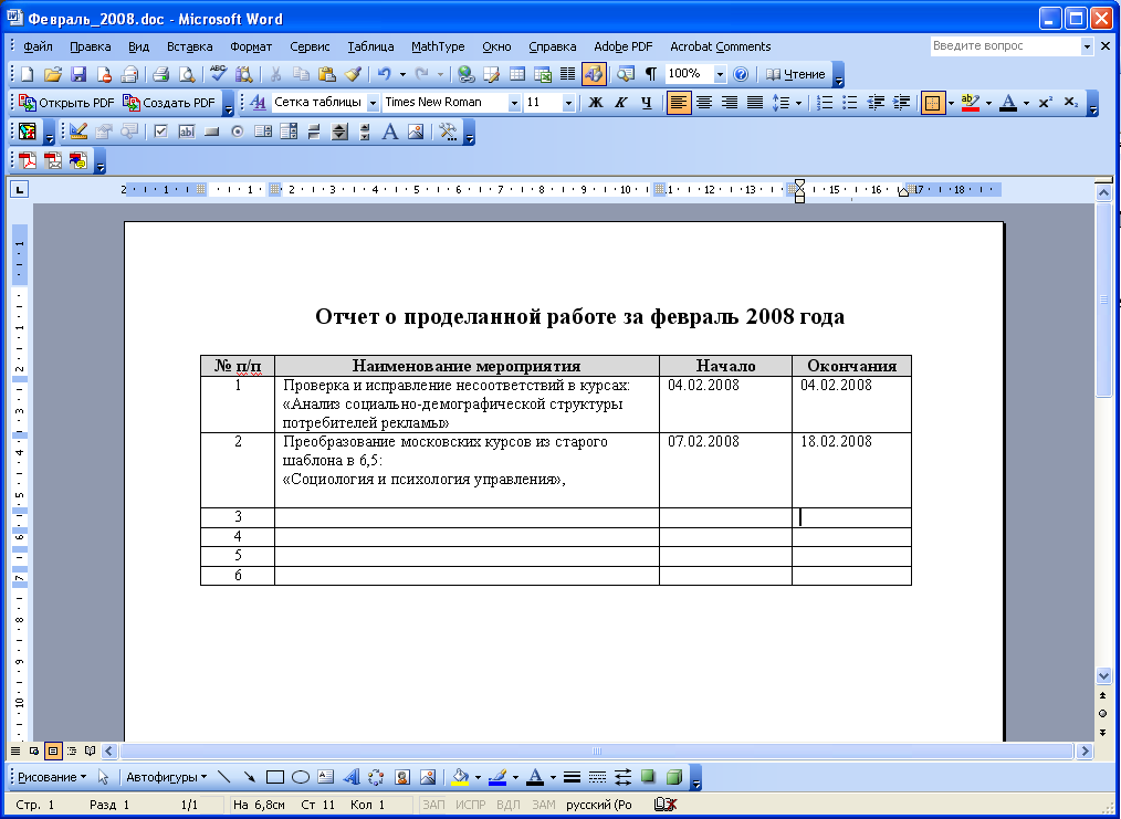 Приложение 7. Пример отчета по проделанным работам за месяц