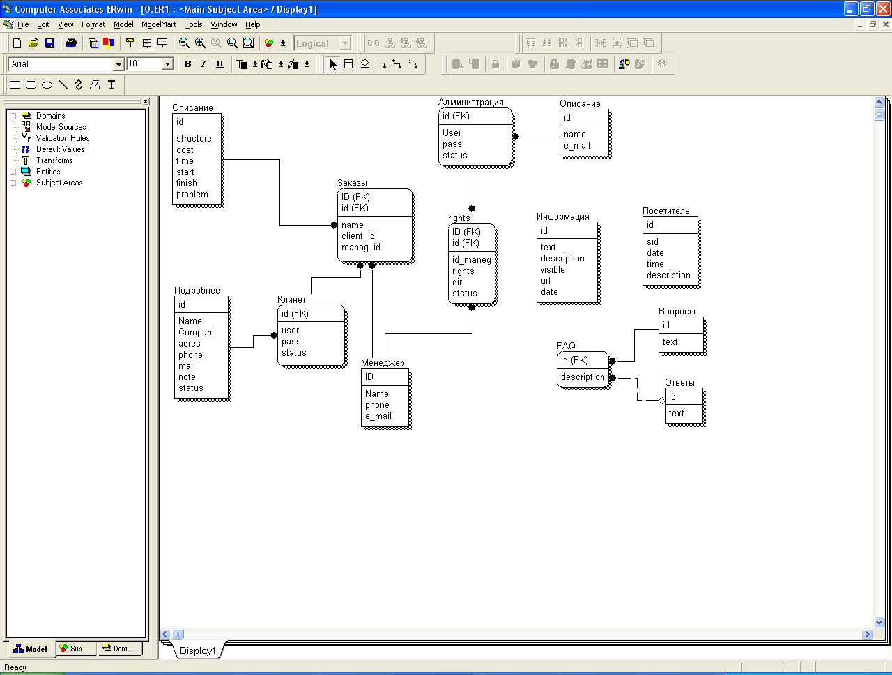 Для создания моделей в нотации UML 2.0 будет использовано CASE средство Telelogic Tau Modeler 3.1, а для модели данных по методологии IDEF1x – ERwin Data Modeler.