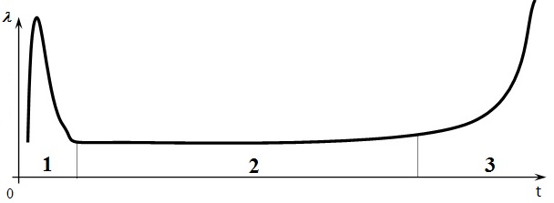 Вероятность безотказной работы Р(t) – это математическое ожидание того, что в заданном интервале времени не произойдет отказа. Вероятность безотказной работы Р(t) связана с интенсивностью отказов следующей формулой: