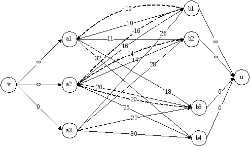 Каждой дуге переписываем стоимость дуги. Если е прямая, то длинна, равна стоимости пересылки, если е обратная, то ее длинна – это стоимость, но при отрицательном значении.