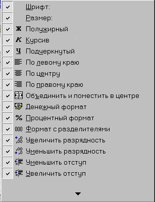 ерувати панелями інструментів зручно за допомогою контекстного меню (мал.7), яке викликається натисканням правої клавіші миші на будь-якій кнопці.