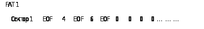 Таблиця FAT розшифровується так (файл DRWEB): у комірці 3 знаходиться посилання на наступний, 4 кластер, а у 4 кластері знаходиться запис ЕOF, що означає кінець коду файлу у даному кластері.