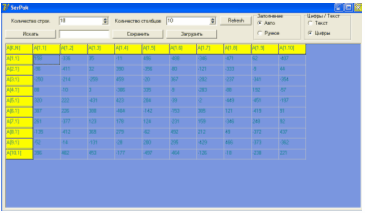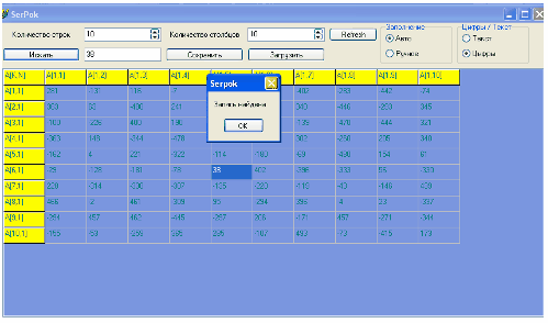 Користувач може вибрати на свій розсуд буквене або цифрове заповнення масиву елементами при перемиканні перемикачів, ’букви’ і ‘цифри’. У цифровому масиві елементи можуть бути як додатні та і від’ємні.