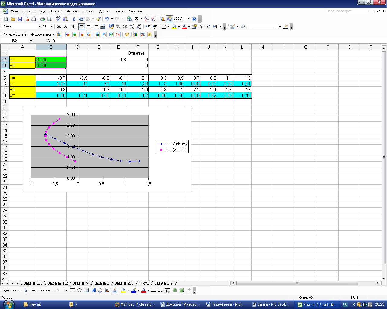 У математичному моделюванні були вирішені всі завдання за допомогою MathCad та MS Excel. При правильного виконання завдання ми повинні отримати однаковий результат. MathCad – зручна своєю простотою та швидкістю, а Excel - містить більш складніші функції.