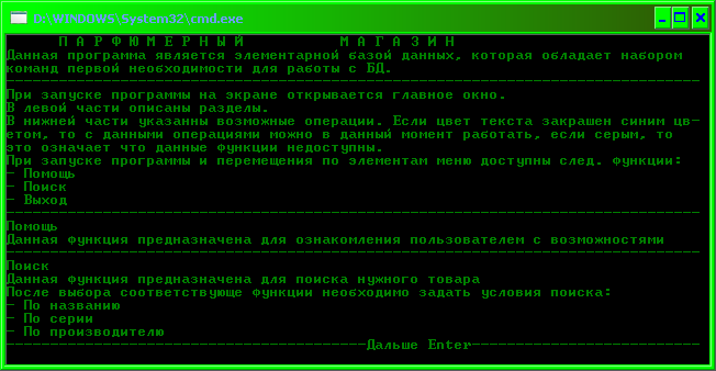 К сожалению темы курсовых работ, были не произвольными, а выбирались по общим правилам. В связи с этим моей темой стал Справочник «Парфюмерный магазин». Я, конечно, слабовато знаю данную область, но с другой стороны в дальнейшей работе, придется создавать такие программы, предметной области которых я могу не знать совсем. Поэтому я постарался изучить данную предметную область и реализовать ее в программном продукте.