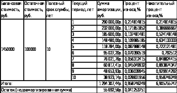 По данным таблицы, используя стандартные функции Exсel, была рассчитана годовая стоимость амортизации компьютера тремя способами: метод суммы лет, линейная, уменьшающегося остатка (функции АМГД, АМР, ДДОБ). Исходные данные по заданию были введены только на первом листе, а ячейки с исходной информацией на остальных листах были завязаны формулами с первым листом. Все расчетно-рублевые данные были округлены с помощью функции ОКРУГЛ до 2-х десятичных знаков.