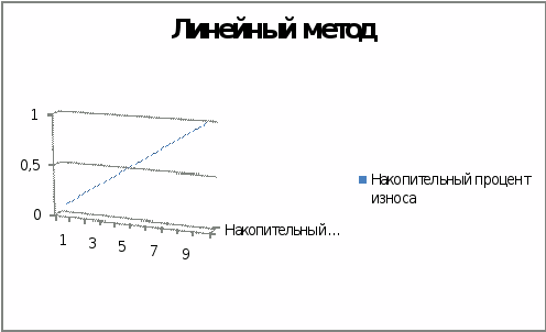 После выполнения всех расчетов были построены: простые графики, отображающие развитие процесса во времени для каждого способа на текущем листе, где рядами данных является процент износа по каждому способу; объемный вариант графика, отображающего развитие процесса во времени для каждого способа на текущем листе, где рядами данных является накопительный процент износа по каждому способу.