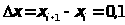 значение x>i> вычисляется из условия, что x>1>=-0,01 h=0,15