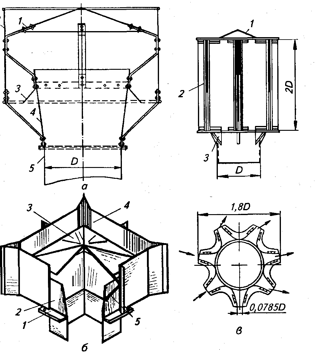Центробежные вентиляторы с колесами диаметром 0,5 м и более должны иметь следующий КПД: при лопастях, загнутых назад, >0,8; при лопастях, загнутых вперед, >0,6; при лопастях, оканчивающихся радиально, >0,65.