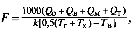Общую площадь поверхности нагревательных приборов, м2, определяют по формуле