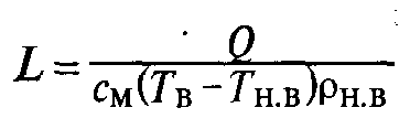 где с>м> — массовая теплоемкость материалов или оборудования, кДж/(кг-К): для воды 4,19, зерна 2,1...2,5, железа 0,48, кирпича 0,92, соломы 2,3; m — масса ввозимых в помещения сырья или оборудования, кг; Т>м> — температура ввозимых в помещение материалов, сырья или оборудования, К: для металлов Т>м> = Т>н>, для несыпучих материалов Т>и> = Т>и> + 10, сыпучих материалов Т>м> = Т>н> + 20; τ — время нагрева материалов, машин или оборудования до температуры помещения, ч.