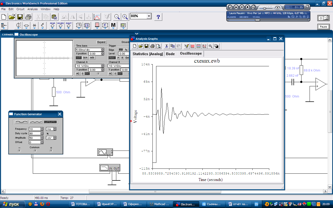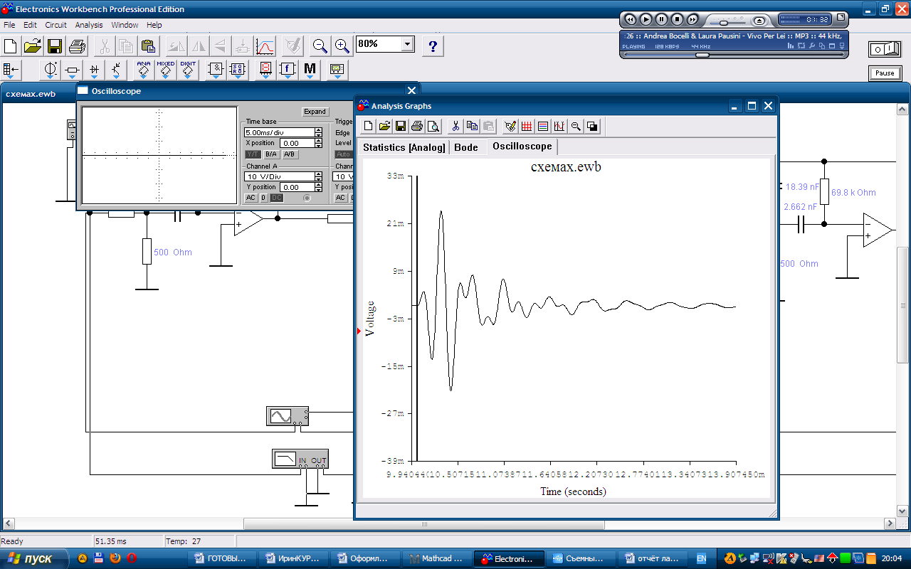8 ИЗМЕРЕНИЕ АЧХ ФИЛЬТРА В СИСТЕМЕ ELECTRONIC WORKBENCH С ПОМОЩЬЮ ЛЧМ СИГНАЛА
