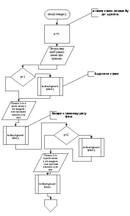 if t=1 then//печать пунктов меню и если t равно номеру их строки то выделение чёрным цветом(для каждого)
