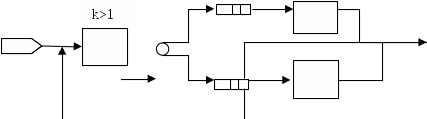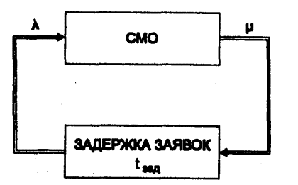 В замкнутых СМО (рисунок1.2.1) обслуженные заявки в общем случае после некоторой временной задержки , снова поступают на вход СМО.