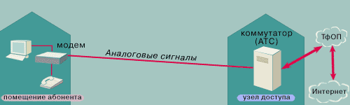Не все линии поддерживают технологии DSL. При использовании стандартной аналоговой телефонной службы абонент набирает номер, который позволяет коммутационному оборудованию телефонной сети установить соединение с другим абонентом или модемом. В случае неисправности, например, модема провайдера, происходит разъединение и для установки соединения абонент должен снова набрать телефонный номер.