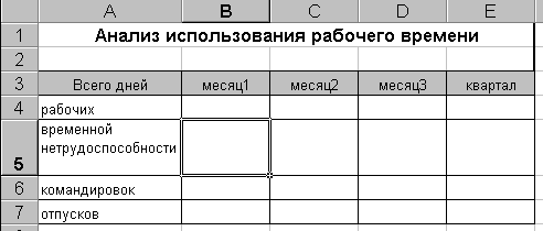 С целью упрощения создания таблиц типа Табель и их унификации разработаем шаблон следующего вида (рис.1):
