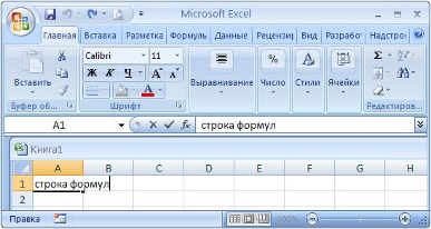 Строка ввода отображает вводимые в ячейку данные. В ней пользователь может просматривать или редактировать содержимое текущей ячейки. Особенность строки ввода – возможность видеть содержащуюся в текущей ячейке формулу или функцию, a не ее результат. Строку ввода удобно использовать для просмотра или редактирования текстовых данных.