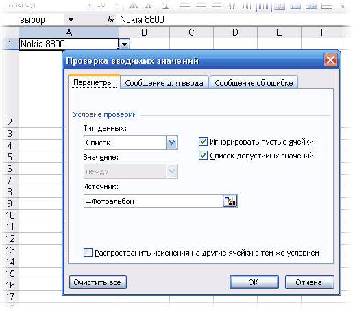Блок используемых ячеек может быть указан двумя путями: либо непосредственным набором с клавиатуры начального и конечного адресов ячеек, формирующих диапазон, либо выделением соответствующей части таблицы при помощи клавиш управления курсором. Удобнее задавать диапазон выделением ячеек.[2]