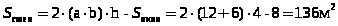 - размеры 12*6*4 м (согласно СН 245-71 высота не менее 3 м), площадь составляет 72м2;
