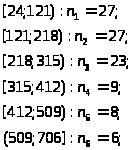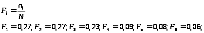 Количество отказов выборки, попавших в i-ый интервал(количество чисел, в данном интервале из таблицы 1):
