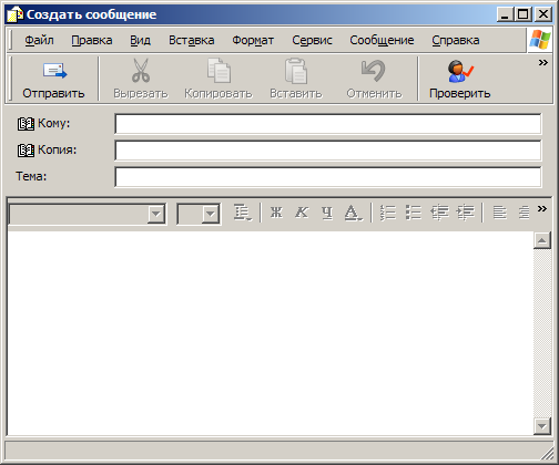 Создание новых сообщений. Это вторая важнейшая функция почтового клиента. Для ее реализации программа может иметь встроенный текстовый редактор. Функциональность редактора зависит от свойств конкретной программы. Для почтовых клиентов, работающих в операционных системах Windows, общепринятой считается поддержка операций с использованием буфера обмена и возможность выбора кодировки текста.