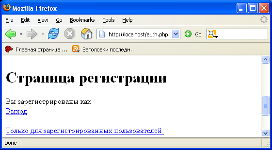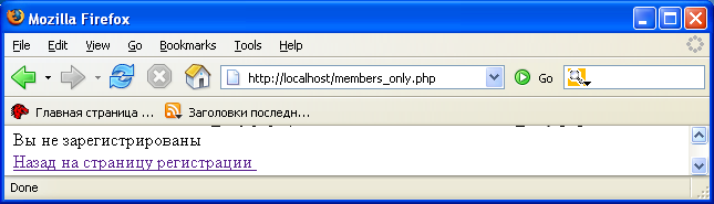 Если регистрация удалась, то посетитель может попасть на страницу для зарегистрированных пользователей, код которой реализован в скрипте members_only.php.