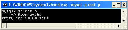 Для работы необходимо создать базу данных auth. Это можно сделать, выполнив SQL-запрос, текст которого приведен в листинге