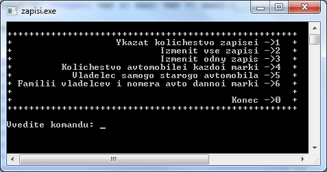 writeln('+ Familii vladelcev i nomera avto dannoi marki ->6 +');