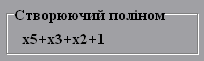 у відповідному полі "Створюючий поліном" отримаємо наступний запис: