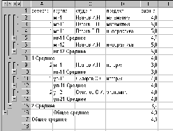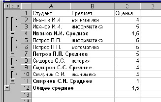 отсортировать данные по двум ключам "Студент" и "Предмет". Если этого не сделать, получим неверный ответ: по ст. Иванову И.И. и Петрову П.П. будет выдано 2 средних оценки - после 1-ой и 3-ей, 2-ой и 6-ой записями соответственно;