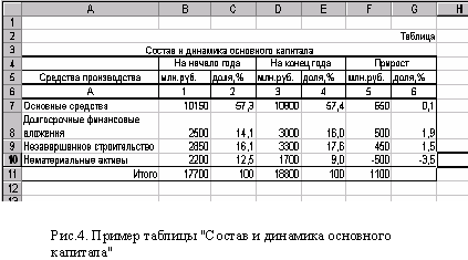 Рис.2. Пример базы данных "Состав и динамика основного капитала