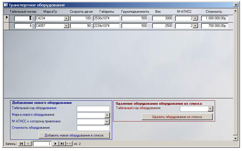 Стоимость (СтоимТр) – определяет стоимость приобретения транспортного оборудования. Величина указывается в тыс. руб.