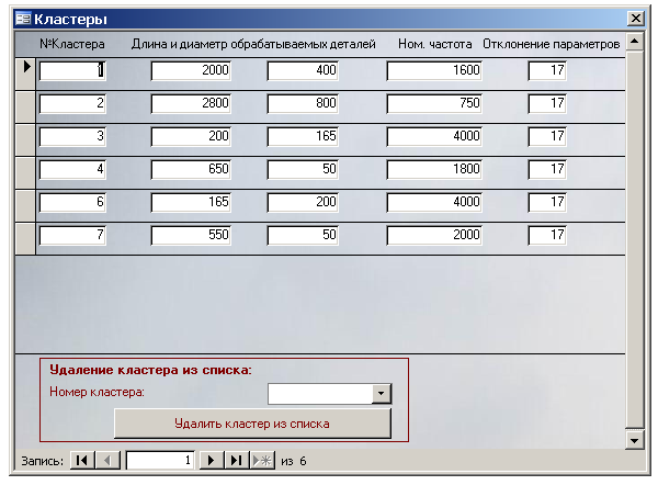 Длина обрабатываемых деталей (ДлинКласт)- устанавливается для каждого кластера