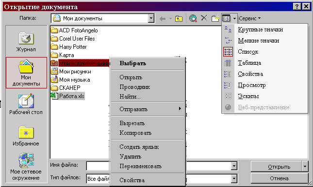 Открыть документ (Ctrl + F12, Ctrl + O)