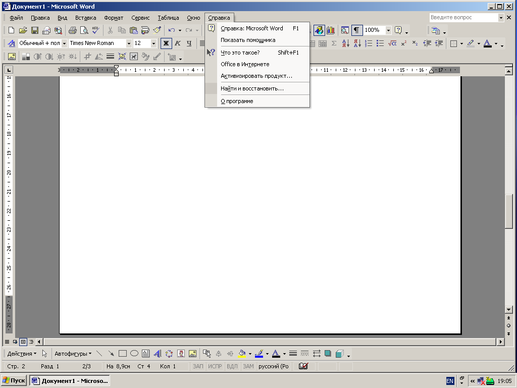 а). Выбором пункта главного меню Пуск => Программы => Microsoft Office => Microsoft Word