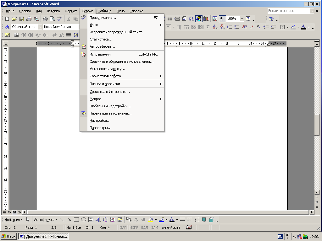 7. Исправления – устанавливает способы выделения исправленного текста.