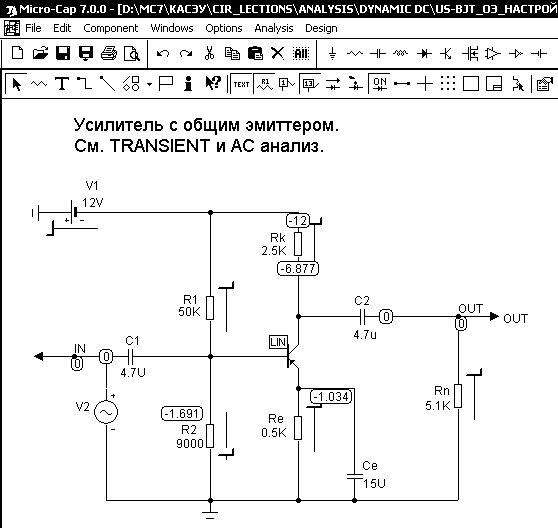 Выполнение моделирования в программном пакете MicroCAP-7