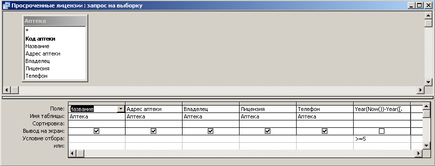 Рис. 18. Запрос на выборку о просроченных лицензиях