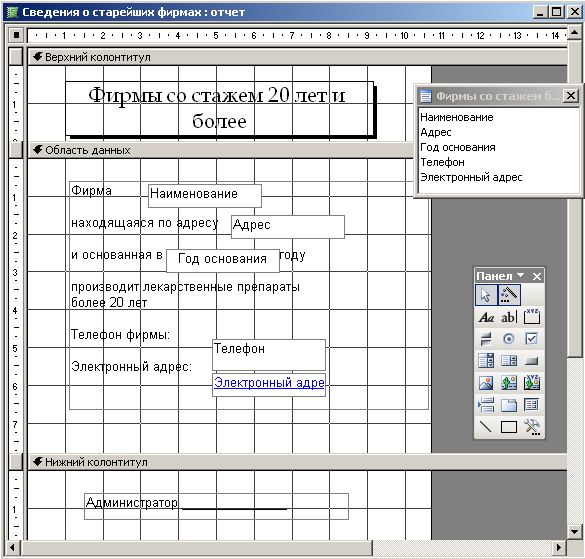 Рис. 21. Создание отчета – Сведения о старейших фирмах
