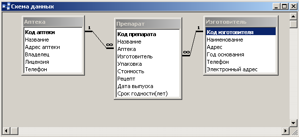 Связи между таблицами в базе данных «Аптеки-Препараты» представлены на рис. 4