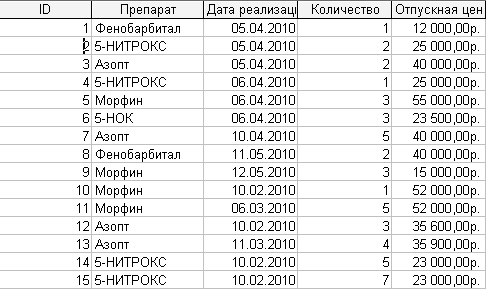Рис.1.8 – Перекрестный запрос: Реализация лекарств по датам