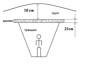 Полученную величину округляем в большую сторону до ближайшего целого значения (в см). Зарисовываем рис с указанием полученных размеров (для грунта и деревянного перекрытия).
