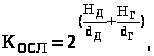 H>Г> = ((lg К>ОСЛ>/lg 2) – 1)·8.4=(( lg 4.26 / lg2)-1)10 см.