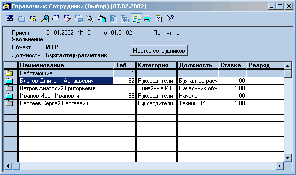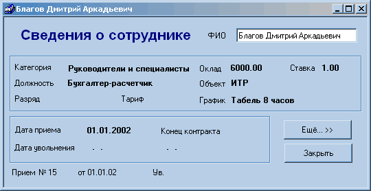 «Расчет» – предназначена для выполнения сложных периодических расчетов. Используется для расчета заработной платы любой сложности, расчетов по ценным бумагам и т.п.